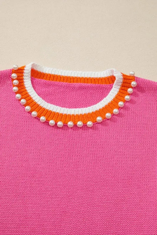 Playful meets luxe in this pearl contrast trim crewneck sweater. Delicate pearl embellishments add a touch of elegance, while the contrast neckline and cuffs bring unexpected charm. The relaxed drop shoulder design creates that effortlessly cozy fit you'll reach for on repeat.