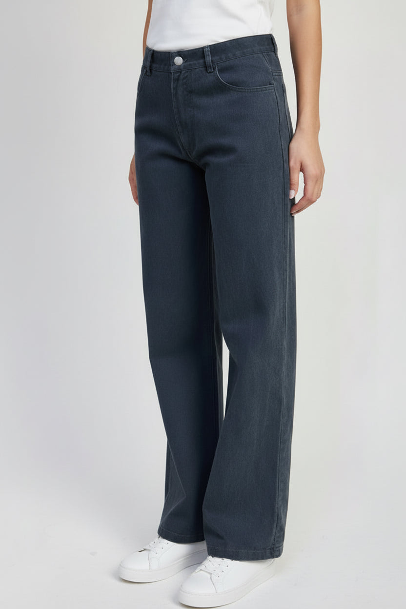 Modern denim with a refined edge. These fitted pants feature a distinctive folded waistband detail that adds architectural interest to a classic silhouette. The full-length cut and tailored fit create a sleek, elongating line that pairs effortlessly with everything from cropped sweaters to tucked-in blouses.