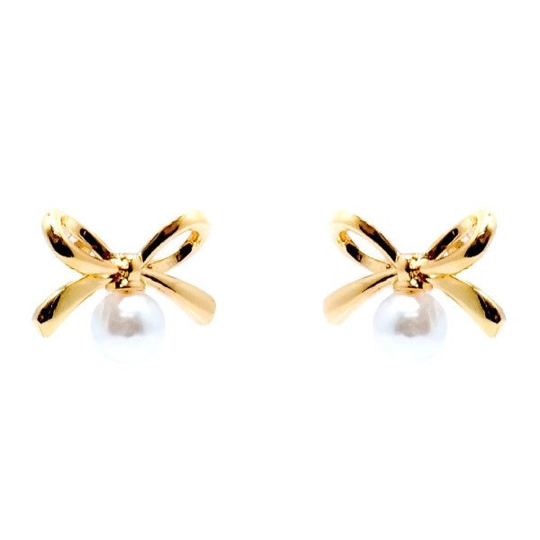 Delicate bows meet timeless pearls. These stud earrings are the perfect finishing touch to any look.