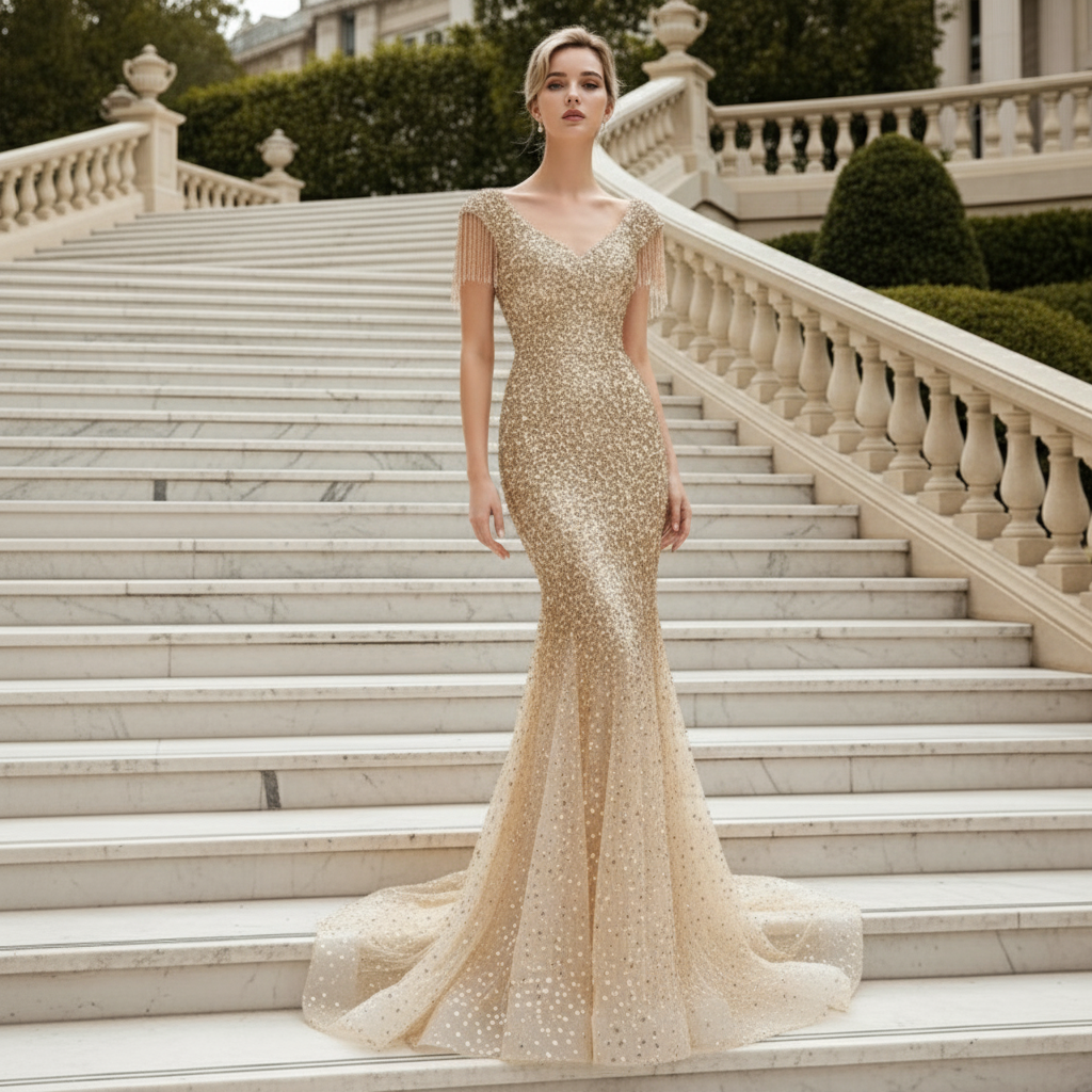 Occasions: Galas, black-tie events, formal weddings, New Year's Eve, red carpet moments, holiday parties